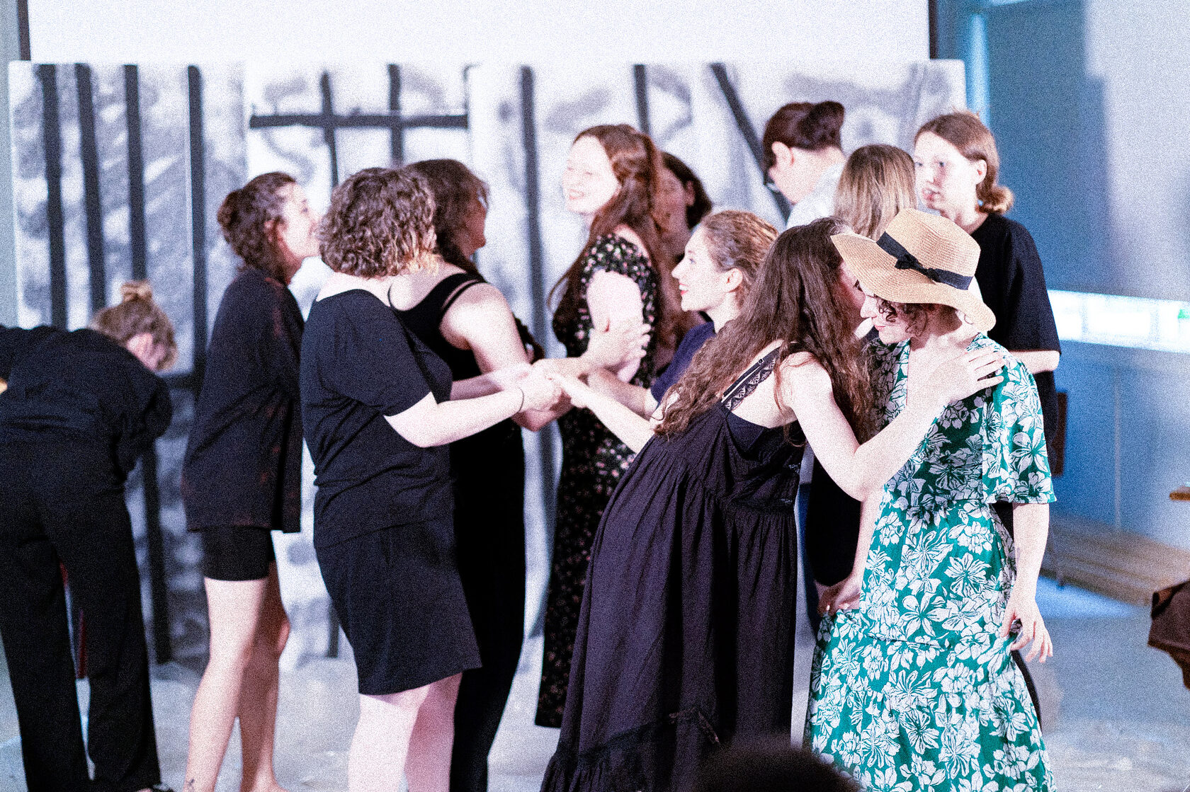 Ксения выступила в качестве режиссера эскиза нашего мюзикла. С ней мы пробовали ставить наши музыкальные номера в разных версиях и искали наиболее подходящую для них инсценировку. Помимо этого мы занимались актерскими тренингами, направленными на работу с воображением и подвижностью тела.
